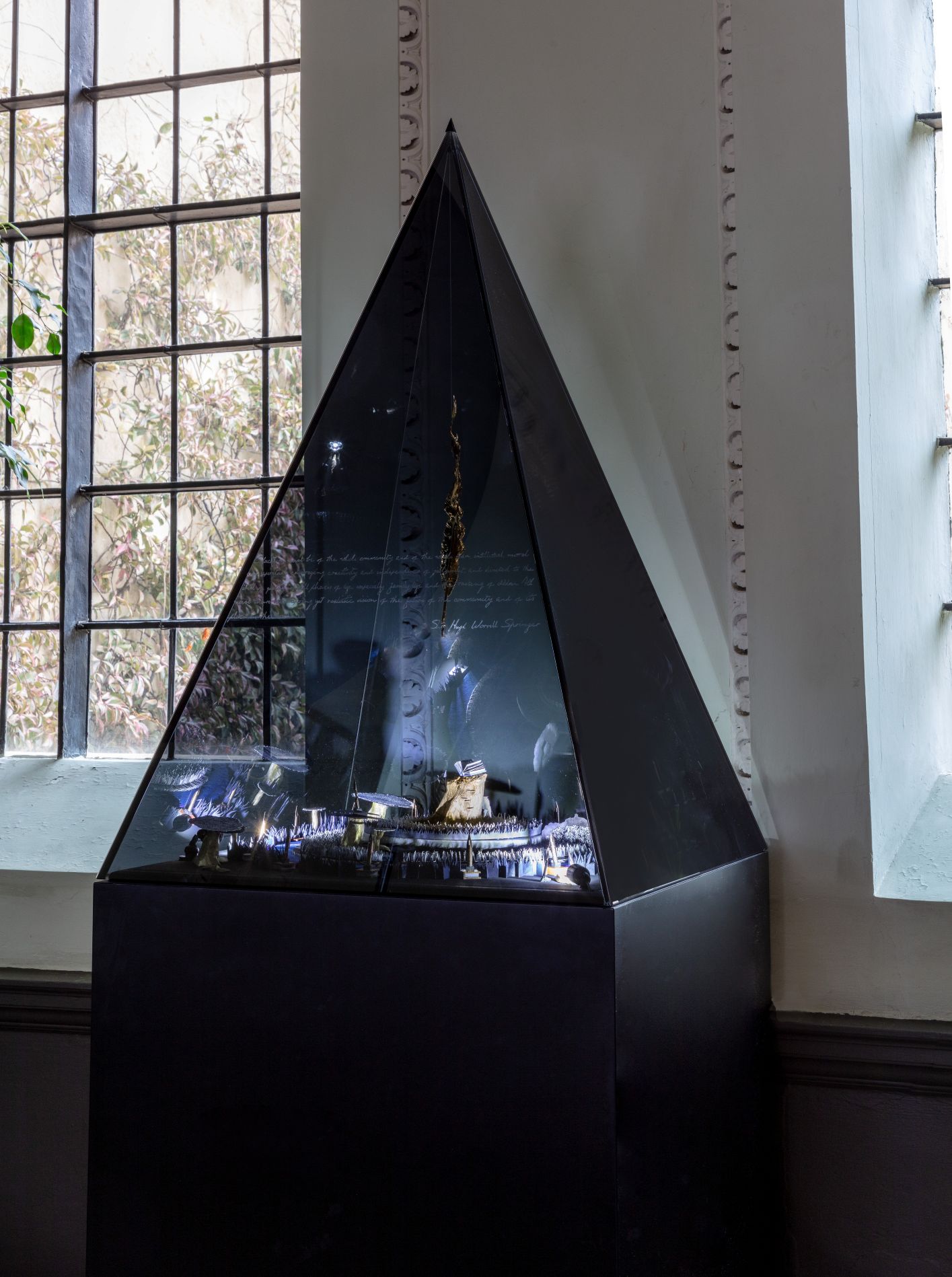 The College also decided that the statue of Codrington which stands at the centre of the Library will remain there. Onto it are projected a sequence of the names of some of those who were enslaved on Codrington’s plantations and adjacent estates in the early eighteenth century. An explanation of the projection, comprising a list of names of enslaved people, a map of Codrington's plantation, and an extract from his will is displayed alongside the statue.