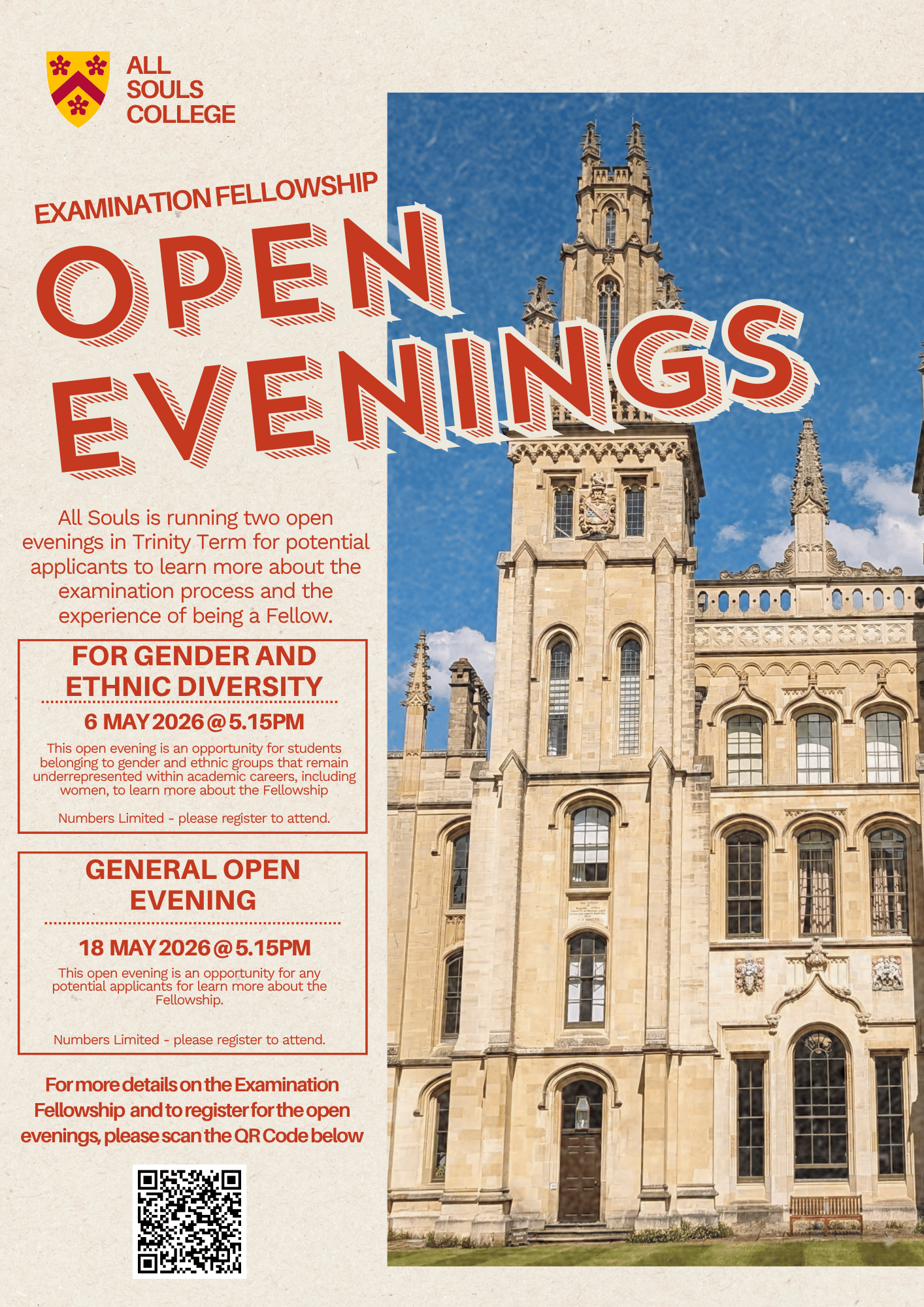 To register your attendance, please complete this form: All Souls Fellowship Exam General Open Evening